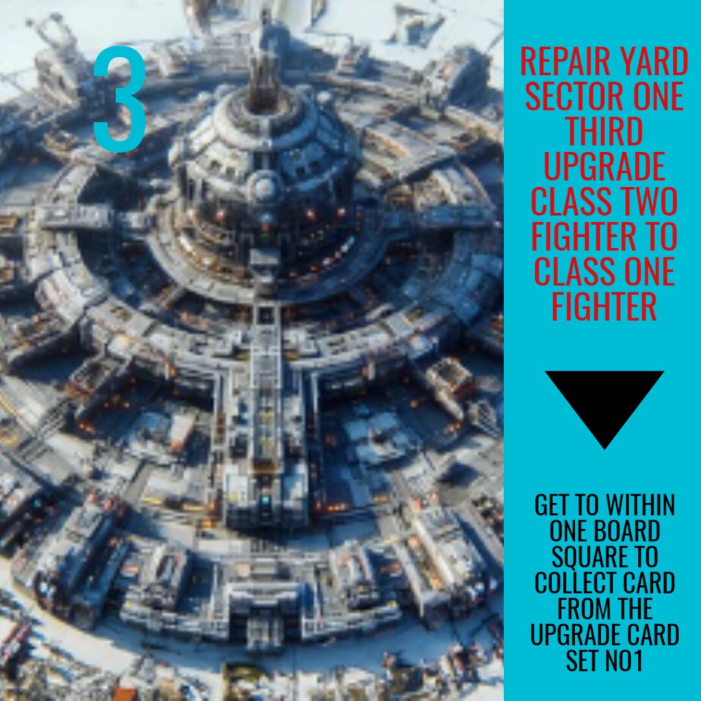 On the board layout there are three upgrade repair yard board tiles in each of the eight space segments – representing three levels of upgrade that you can get