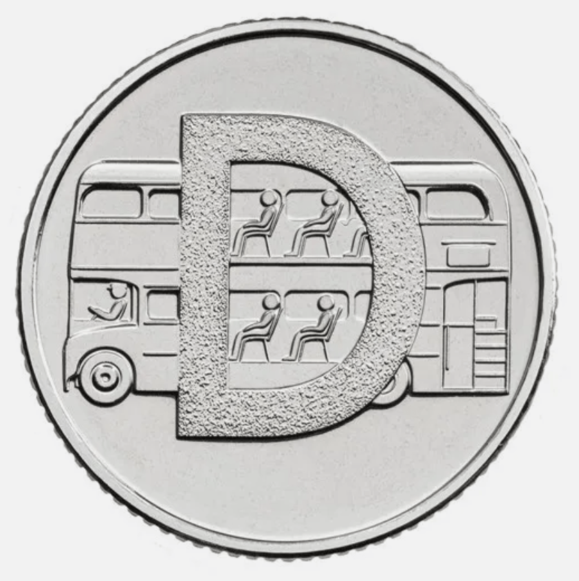 - LETTER D – 2018 – £6 – DOUBLE DECKER BUS – 2019 – £8